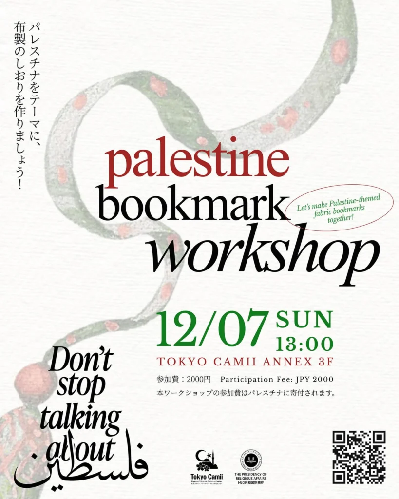 パレスチナに思いを寄せ、支援するための裁縫ワークショップを開催します。パレスチナの伝統柄をモチーフにした生地を用いて、ご一緒に布製のしおりを作りましょう。