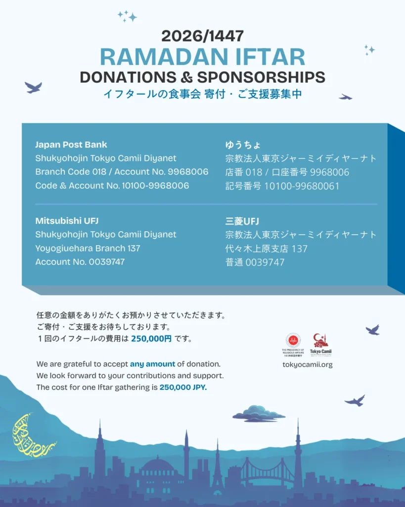 Thank you for your continued understanding and support for the activities of Tokyo Camii.