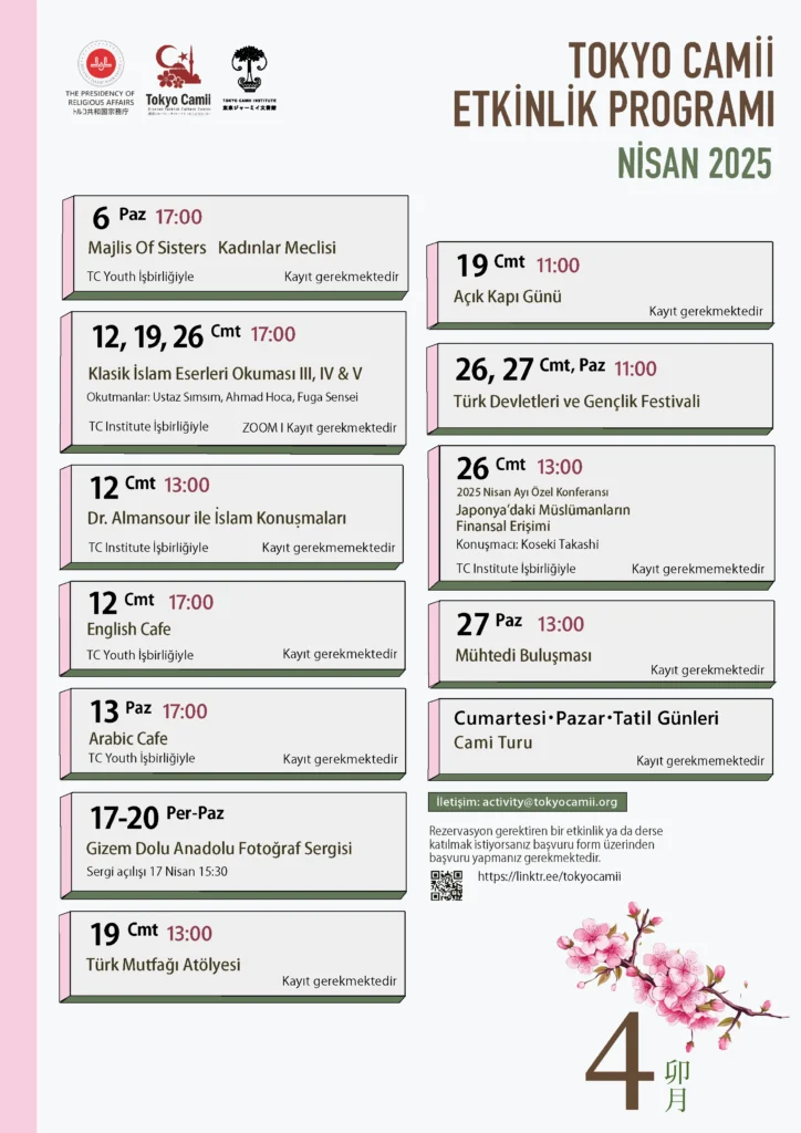 Tokyo Camii 2025 Nisan Ayı Etkinlik Programı